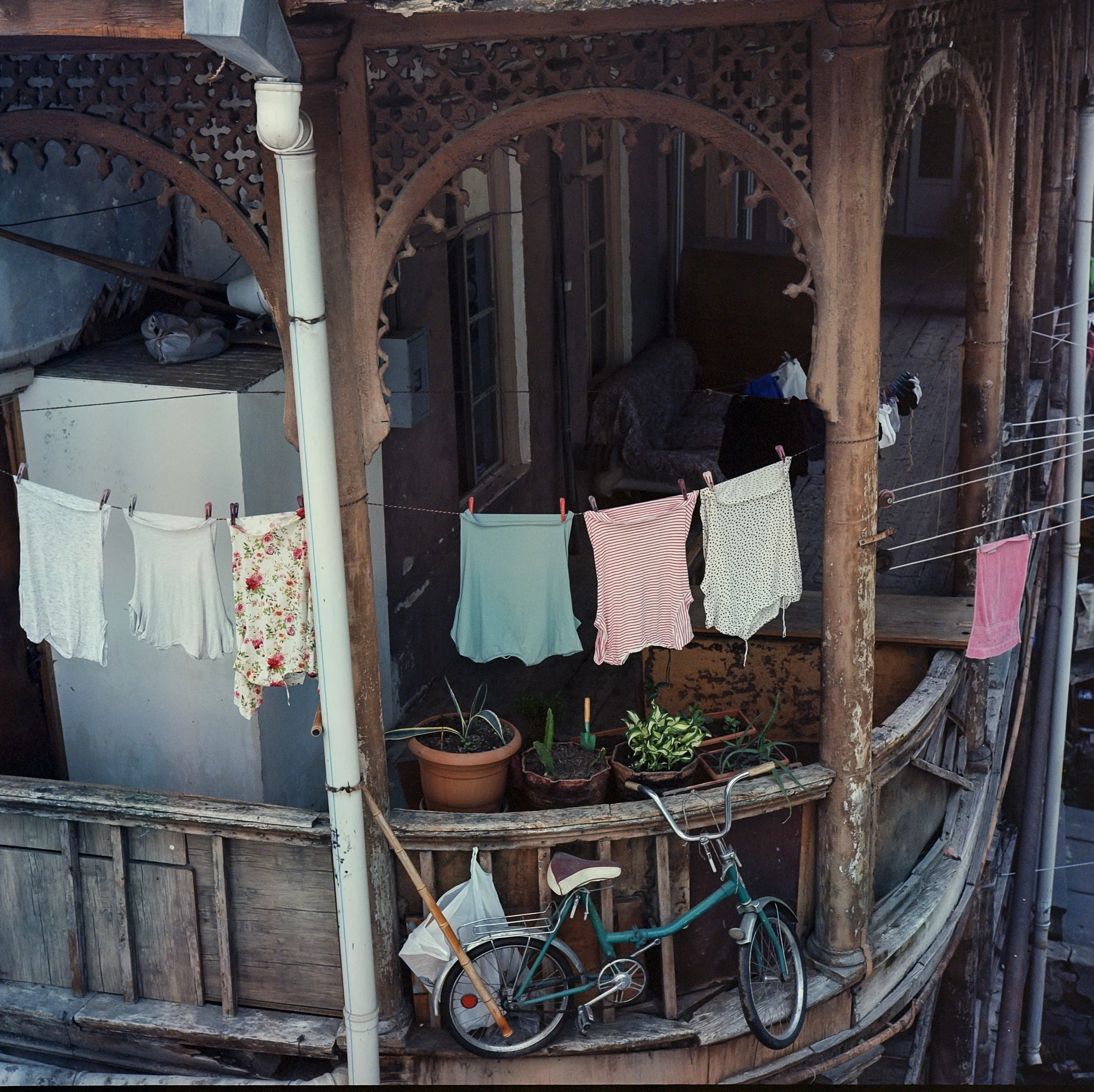 Green Bike on a Tbilisi Balcony - Rolleiflex 2.8C with Fuji Pro 400H