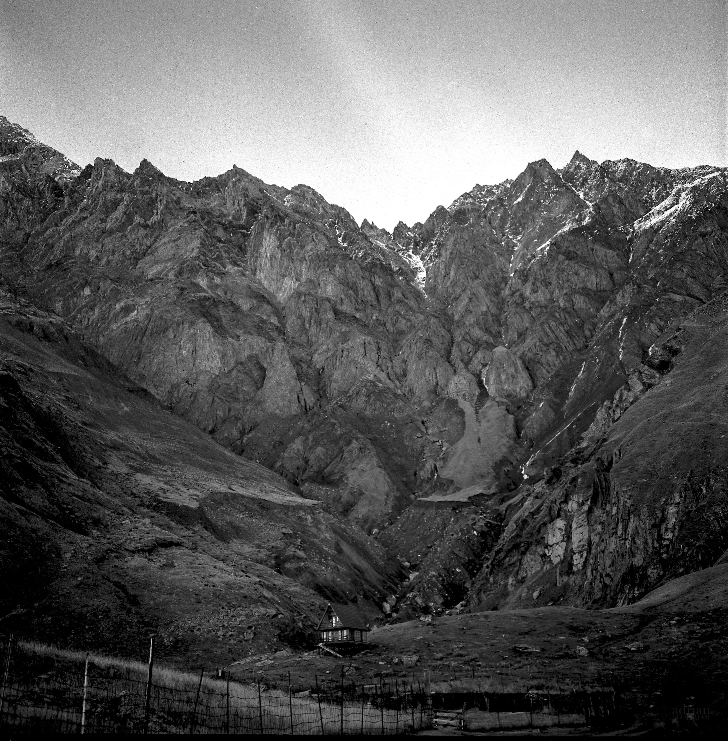 The Greater Caucasus Mountains at Stepantsminda - Rolleiflex 3.5E with Kodak Tri-X 400