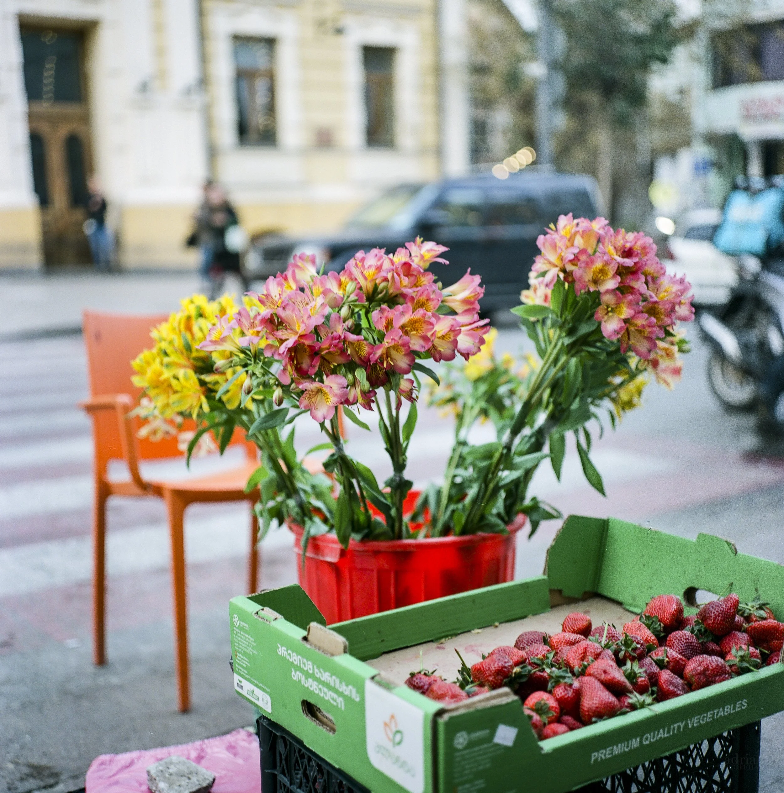 Cut Flowers & Strawberries in Tbilisi - Rolleiflex 2.8C with Kodak Ektar 100